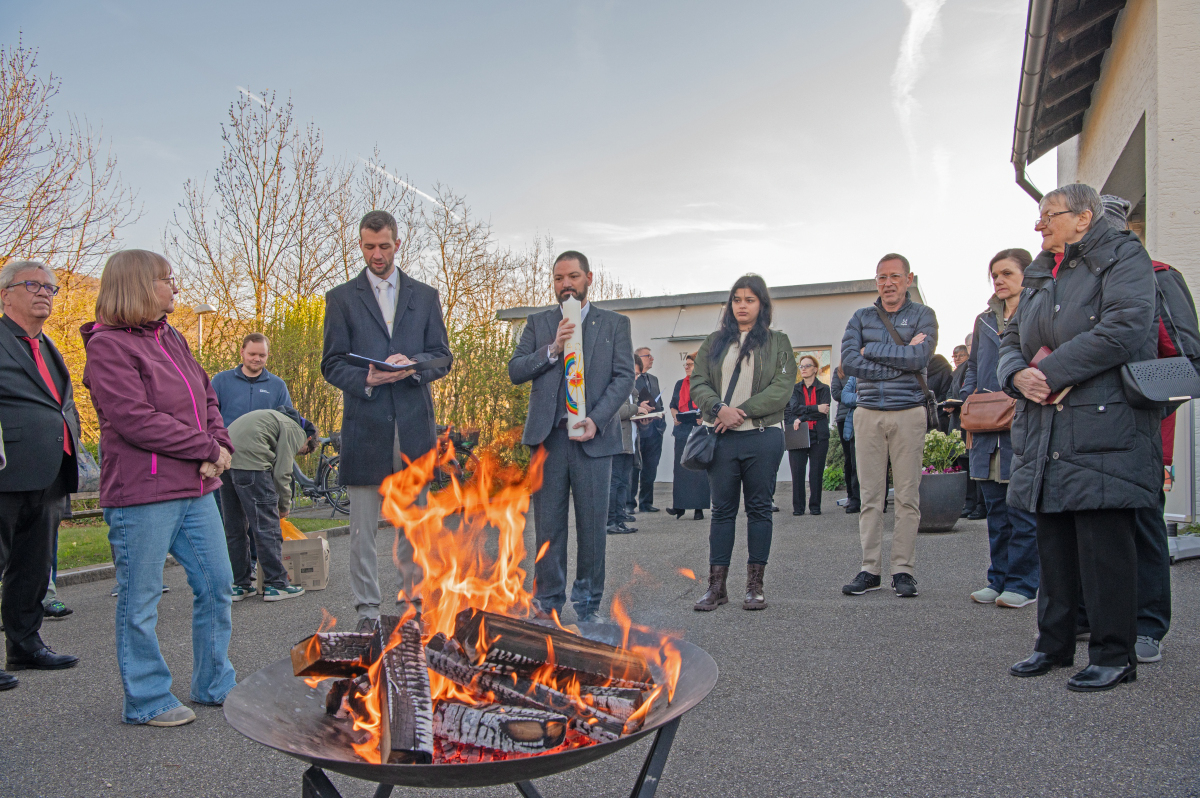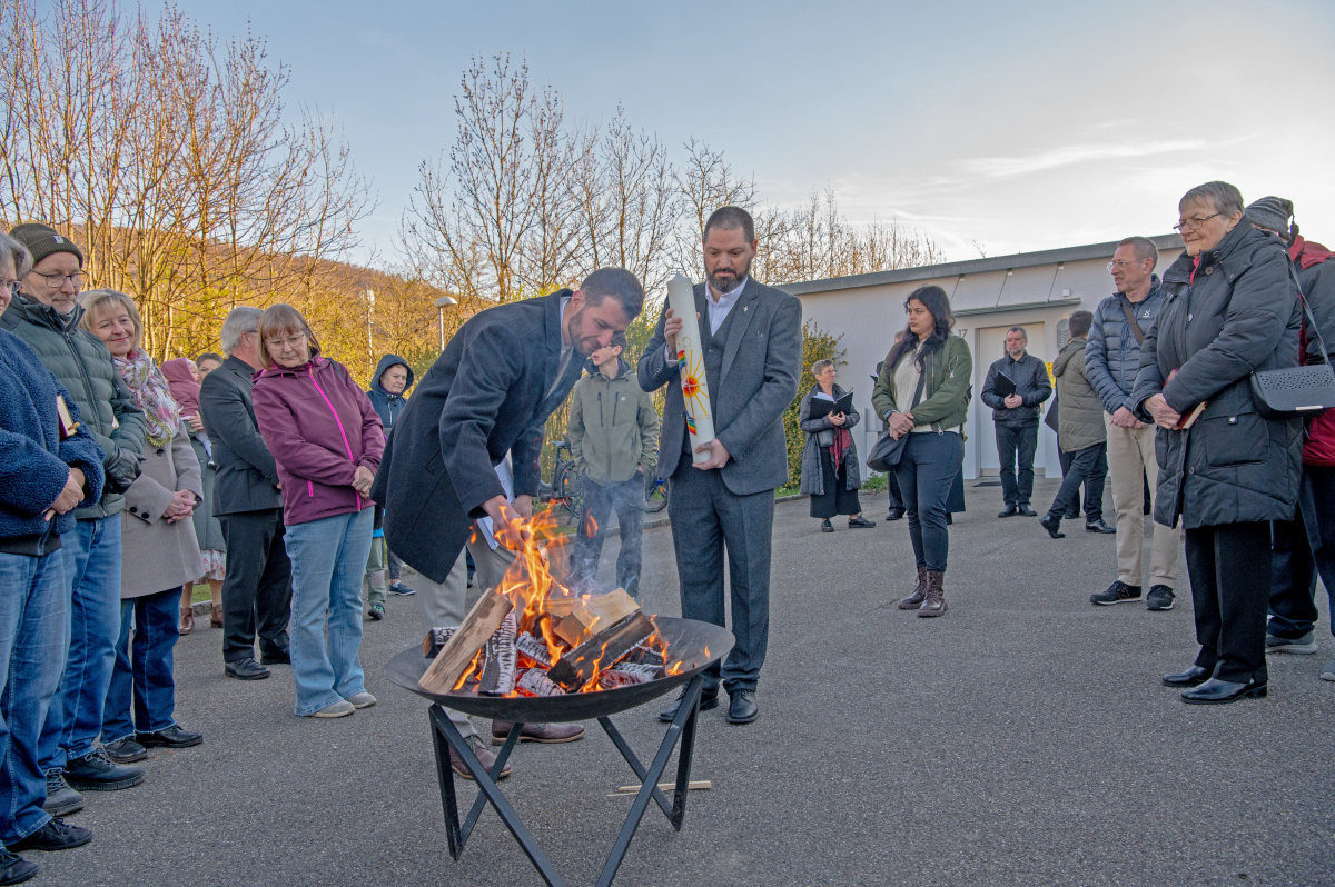 Das 800-jährige Bestehen der Gemeinde Wangen wurde gefeiert und im Gottesdienst thematisiert. Zu diesem Anlass hat sich die reformierte Kirche in Wangen zum ersten Mal eine Osterkerze zugetan. Diese wurde am Osterfeuer eingeweiht und angezündet. Beides - das Osterfeuer und die Osterkerze - stehen symbolisch dafür, dass Jesus das Licht der Welt ist (Johannes 8,12). Wer ihm im Glauben nachfolgt, hat das Licht des Lebens und wird durch den Heiligen Geist befähigt, dieses Licht wiederum auszustrahlen.
