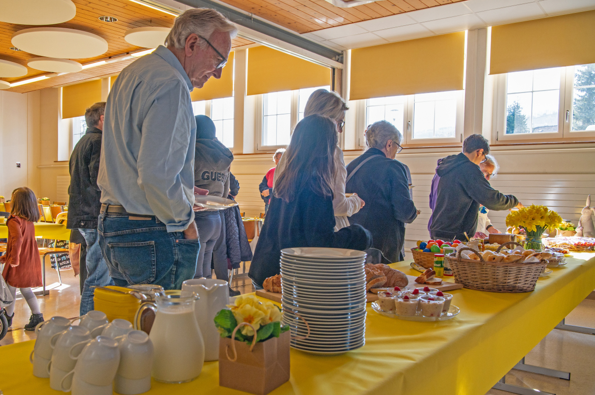 Der feierliche und gemeinschaftliche Morgen wurde abgerundet mit einem reich gedeckten Tisch, an dem sich alle zum Brunch bedienen durften. Bevor es den Kindern langweilig wurde, versteckten zwei Konfirmanden Schoggieier rund um die Kirche, die danach eifrig wieder zusammengesucht wurden.